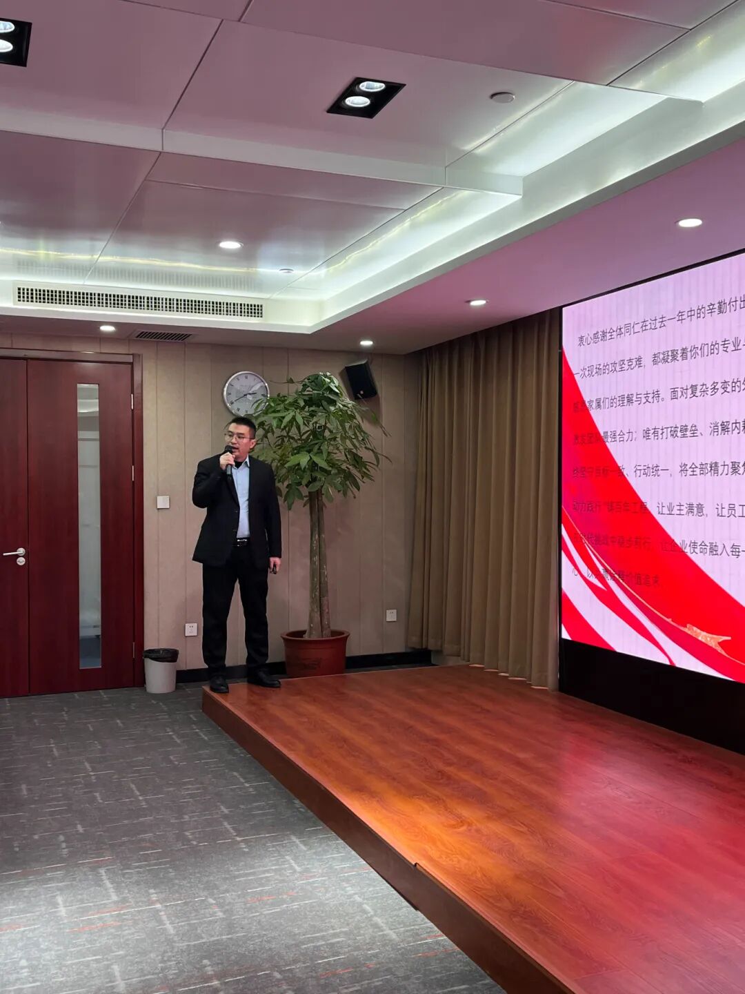 最后董事長進(jìn)行總結(jié)致詞。董事長對(duì)公司每個(gè)部門工作進(jìn)行細(xì)致肯定及贊賞,集團(tuán)設(shè)計(jì)院與售電公司業(yè)務(wù)相較上一年都有增長,但也指出當(dāng)前嚴(yán)峻的市場環(huán)境,鼓勵(lì)大家深思個(gè)人及公司未來發(fā)展方向。