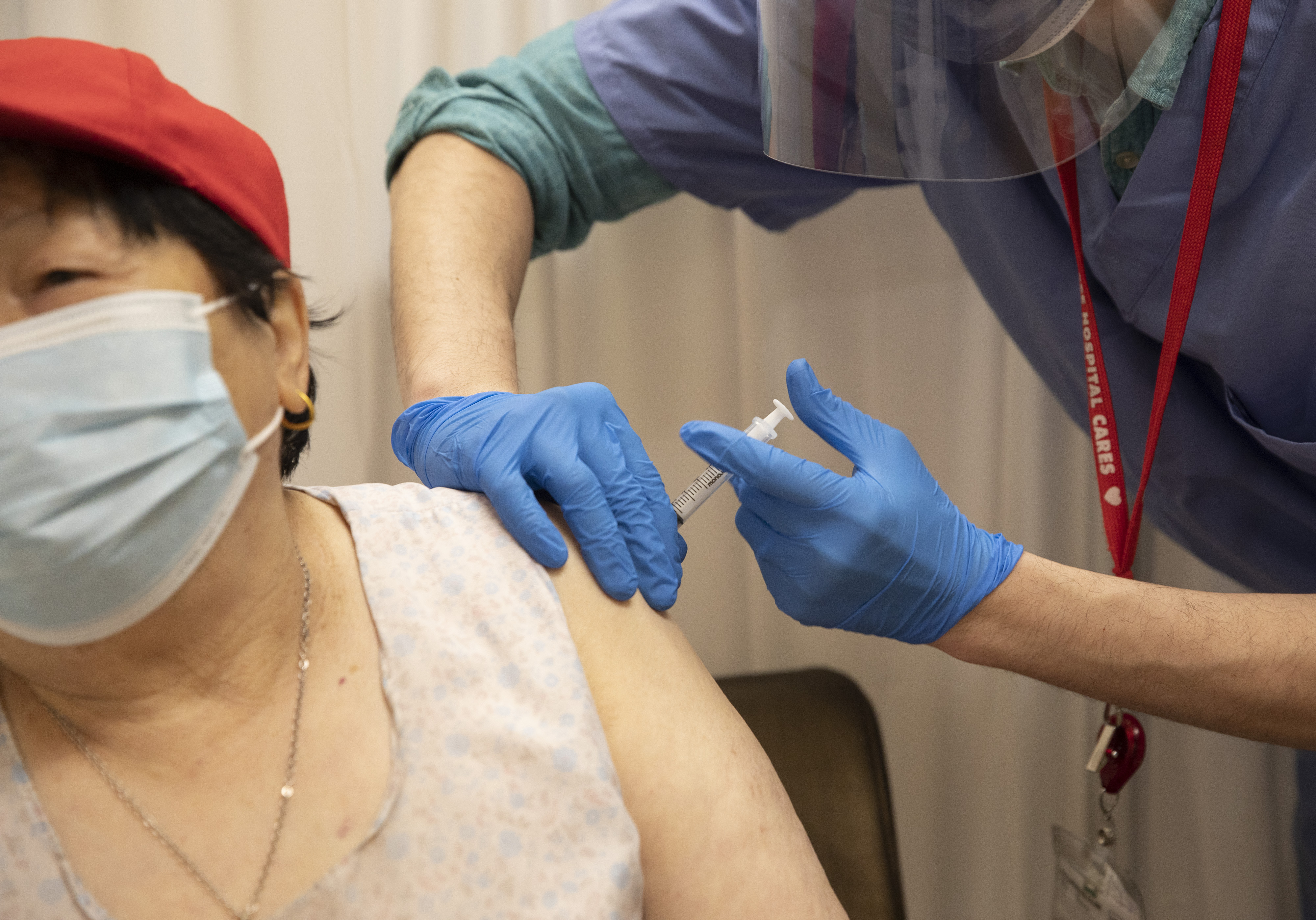 2月17日,舊金山東華醫(yī)院的醫(yī)護(hù)人員為附近華裔社區(qū)居民接種新冠疫苗。(圖片來源:中新社)