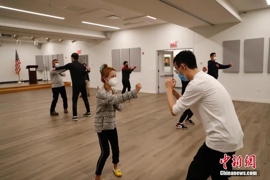 資料圖:2021年4月25日,美國紐約法拉盛亞裔社區(qū)自發(fā)成立的“公共安全巡邏隊”隊員以及部分民眾進行防衛(wèi)術(shù)訓練,提高安防能力。中新社記者 廖攀 攝