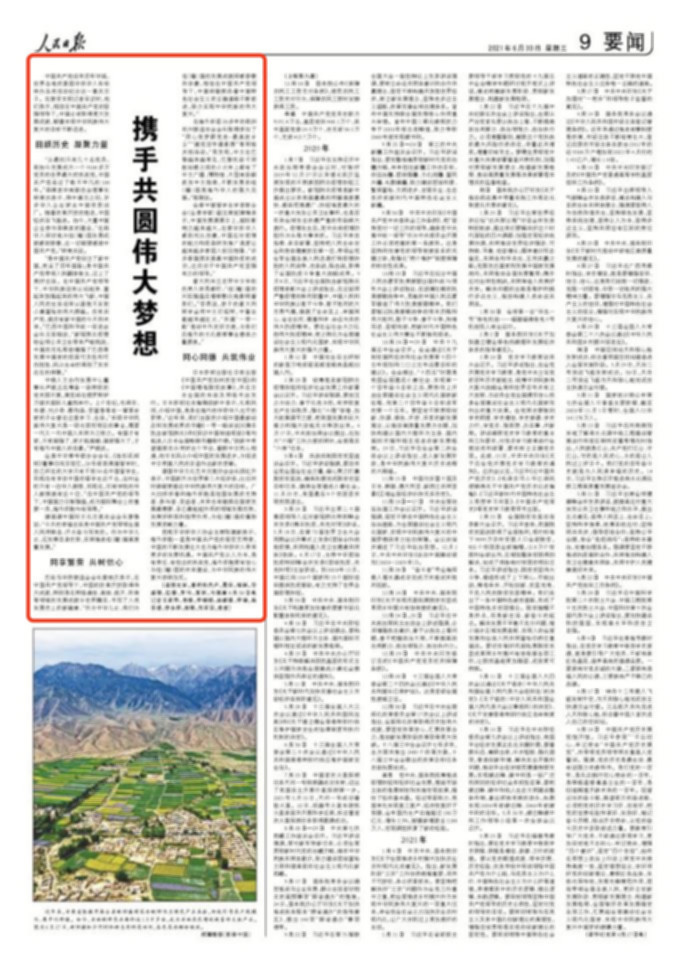 6月30日出版的《人民日報》刊發(fā)題為《攜手共圓偉大夢想》文章,報道世界各地的愛國華僑華人暢談共慶中國共產(chǎn)黨成立100周年的感言感想,全文如下: