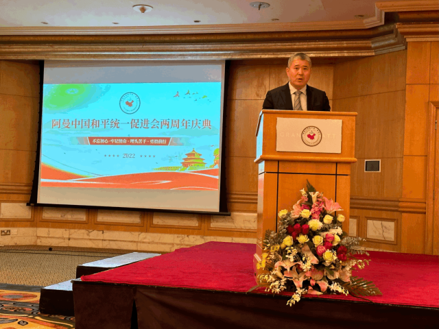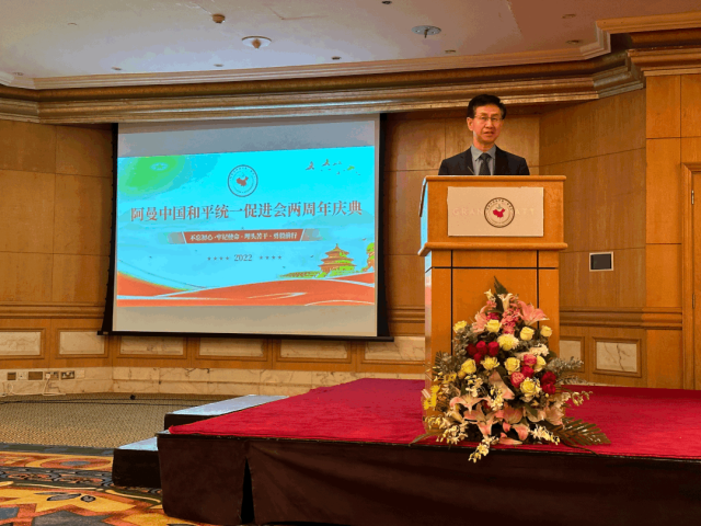 阿曼中國和平統(tǒng)一促進(jìn)會(huì)會(huì)長劉影東發(fā)表致辭