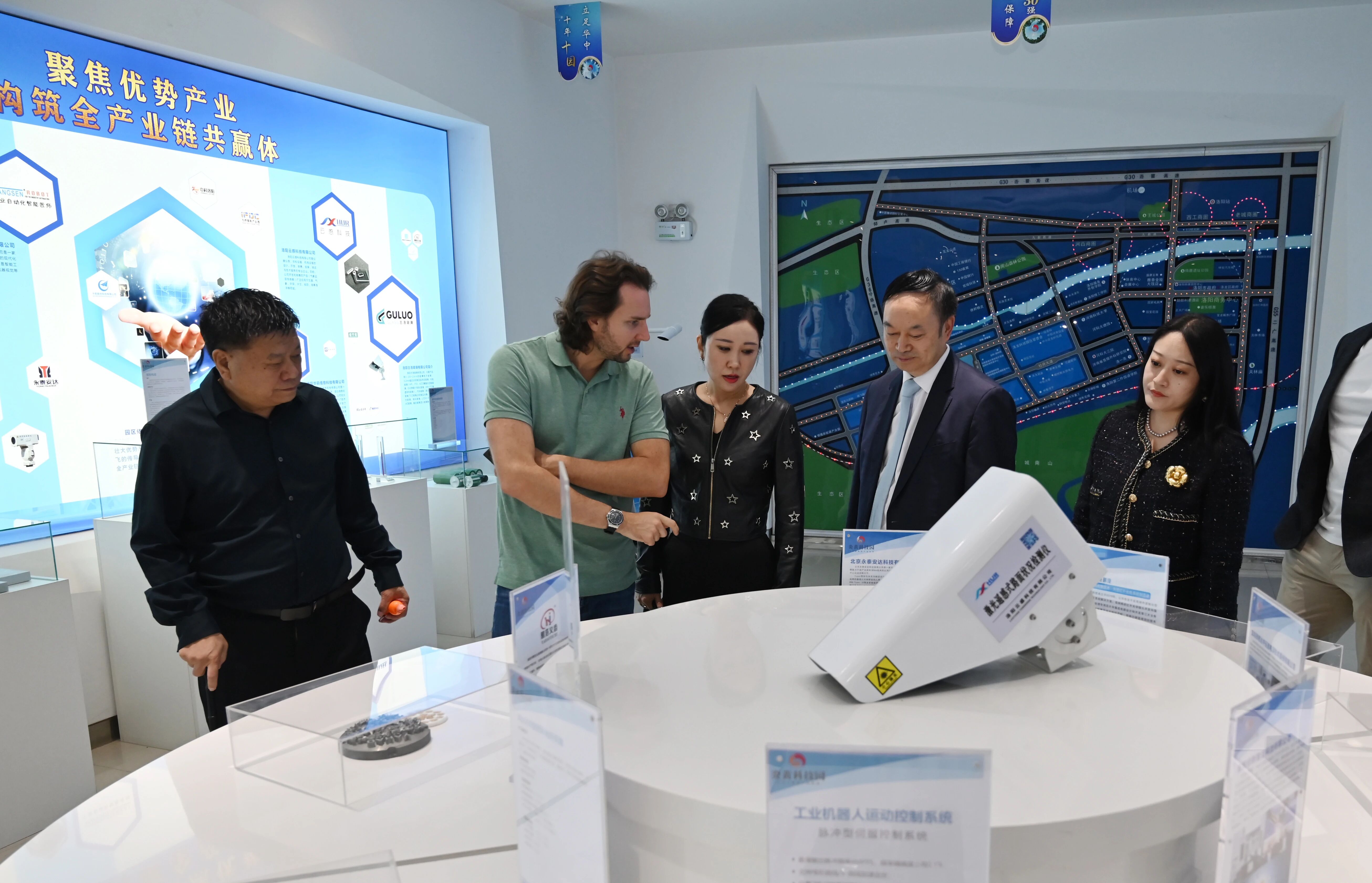 座談會(huì)結(jié)束后,參會(huì)的北京科萊達(dá)集團(tuán)董事局主席董寶財(cái)、董事局主席助理劉艷茹,中鐵十五局原副局長(zhǎng)周建富,洛陽(yáng)市僑商聯(lián)合會(huì)副會(huì)長(zhǎng)、洛陽(yáng)雅浩義齒有限公司總經(jīng)理史棟良等嘉賓與鄺遠(yuǎn)平在園區(qū)貴賓廳進(jìn)行了深入溝通,雙方達(dá)成多項(xiàng)合作共識(shí),并參觀了園區(qū),走訪了洛陽(yáng)人力資源服務(wù)產(chǎn)業(yè)園等子園區(qū)及中澳大數(shù)據(jù)研究院等企業(yè)。